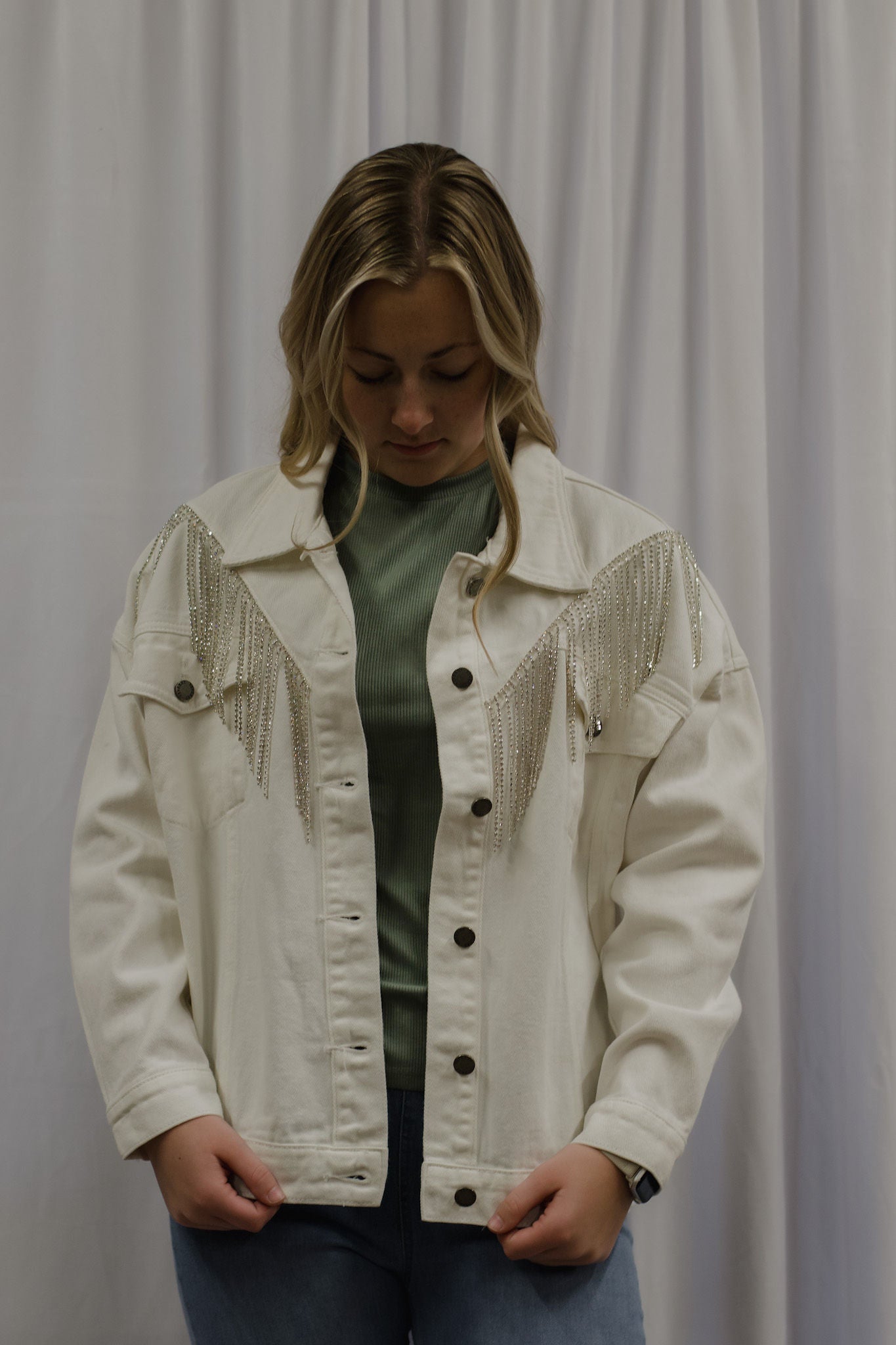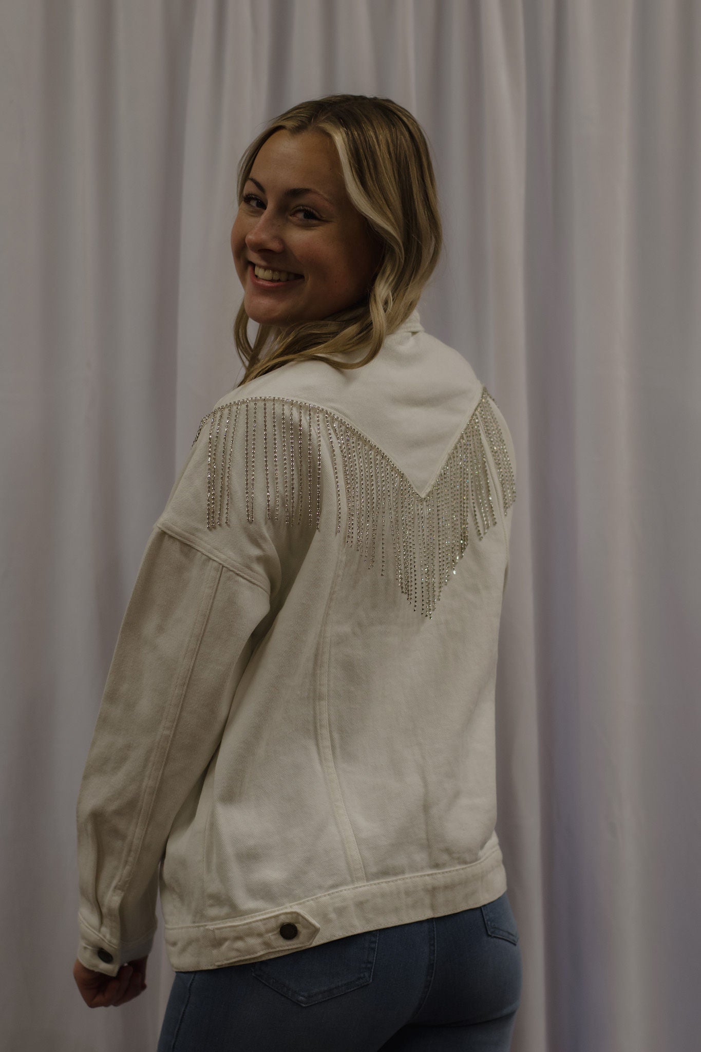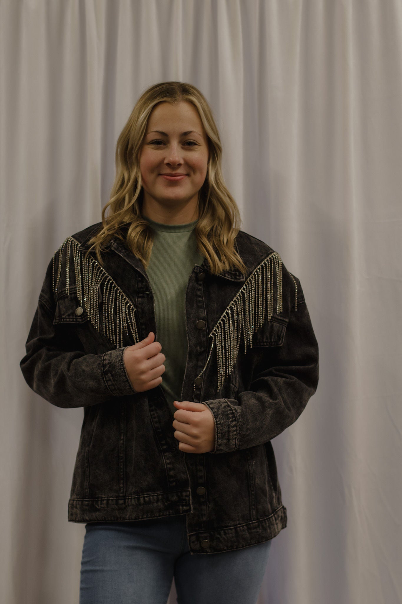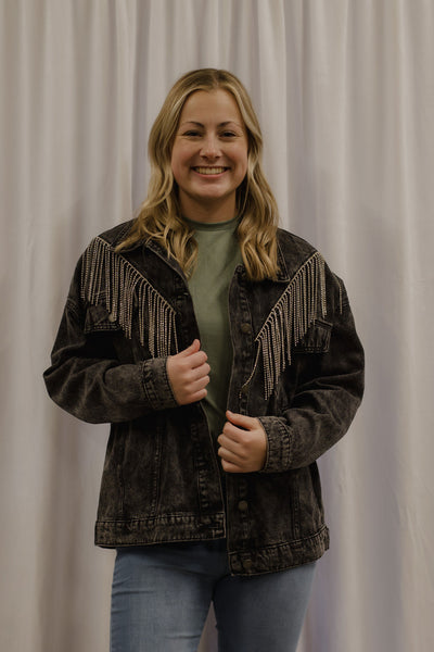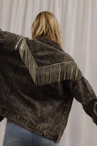 Rhinestone Fringe Denim Jacket