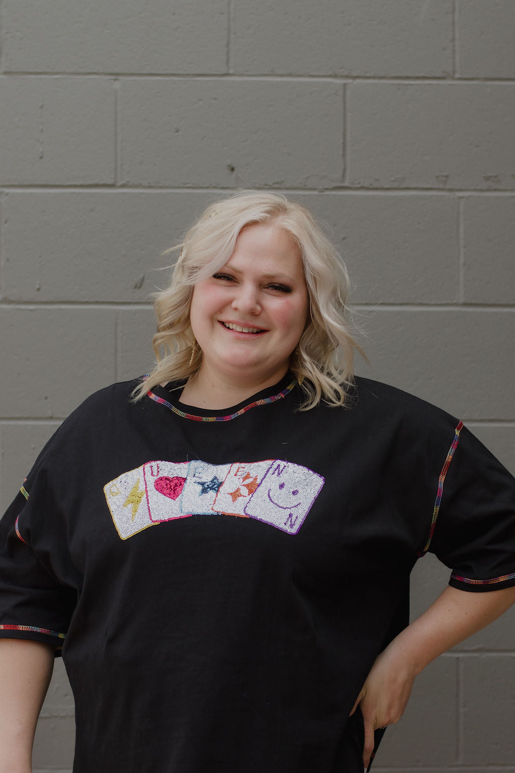Rainbow Queen Poker Sequin Tee