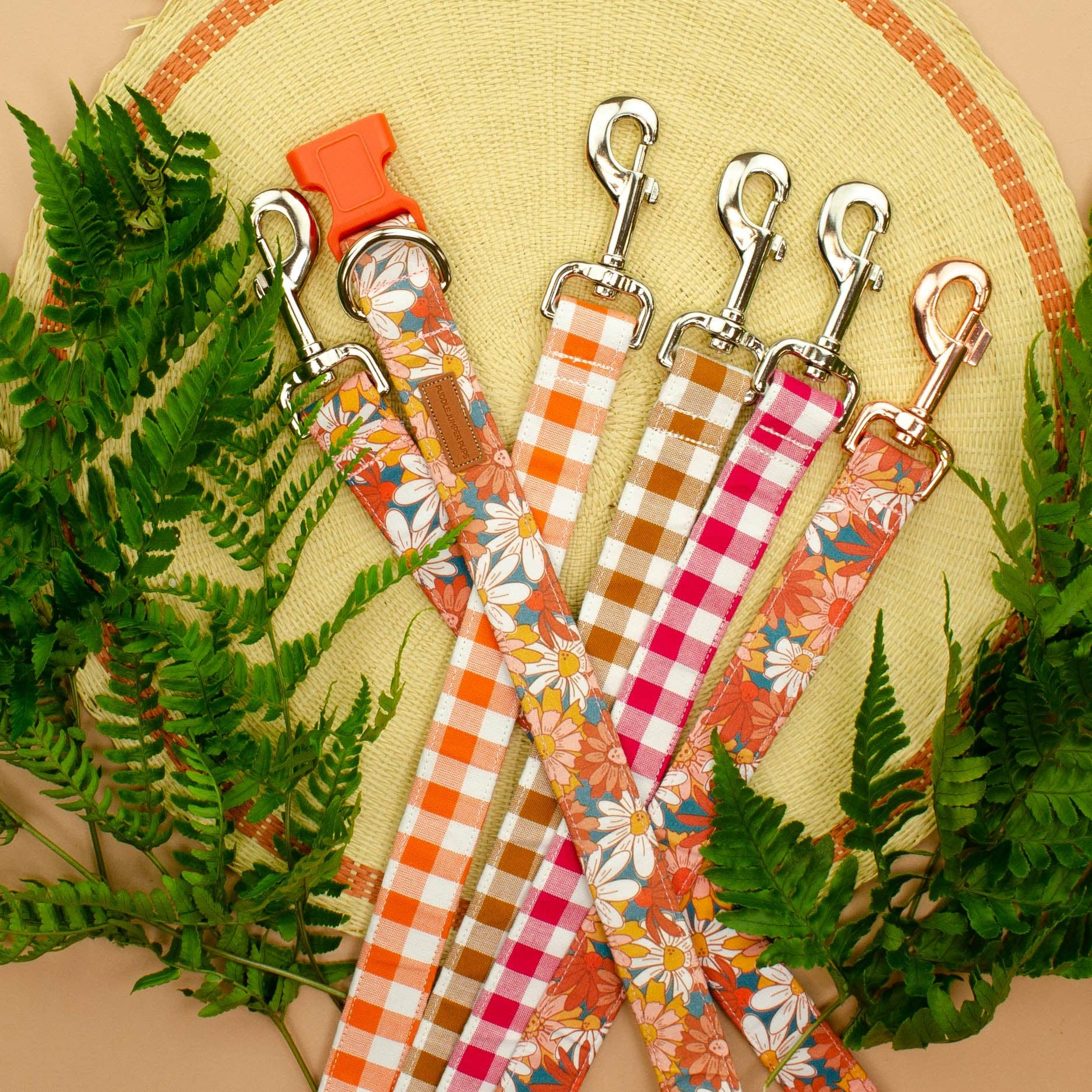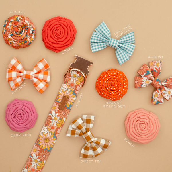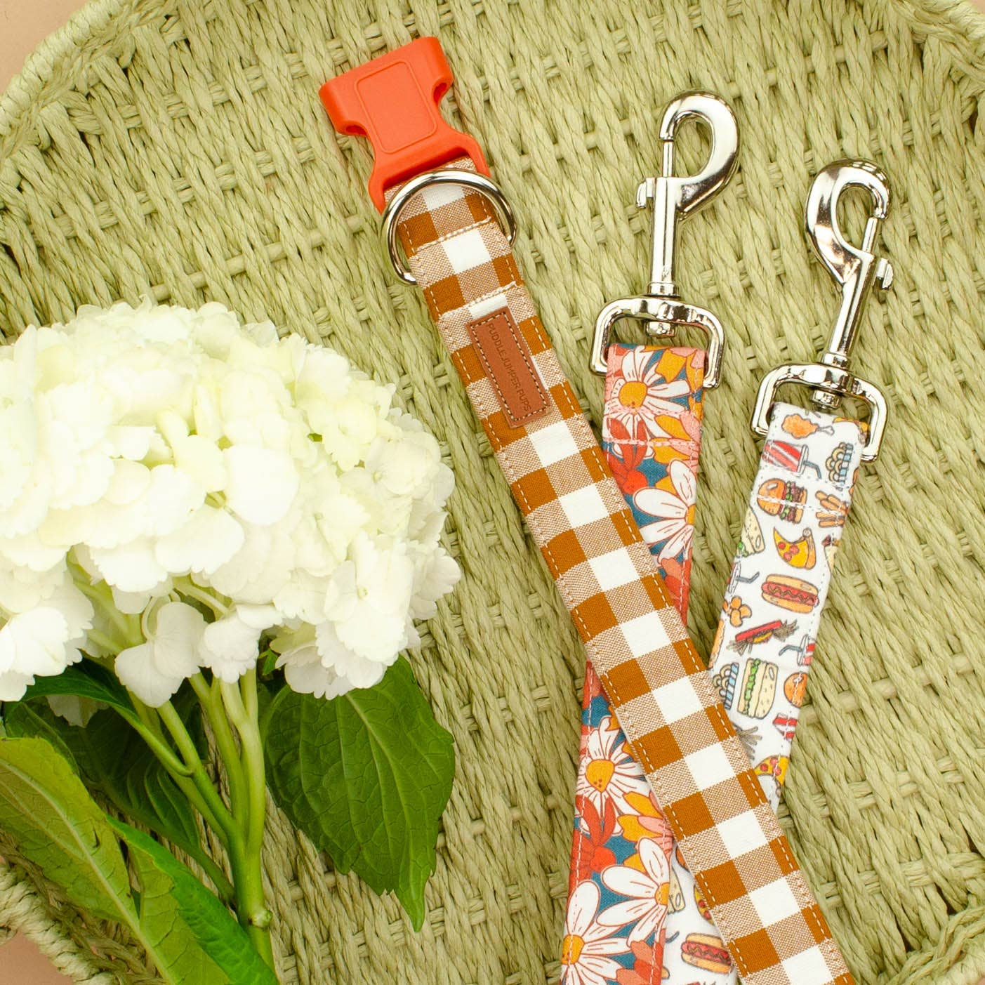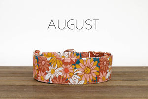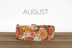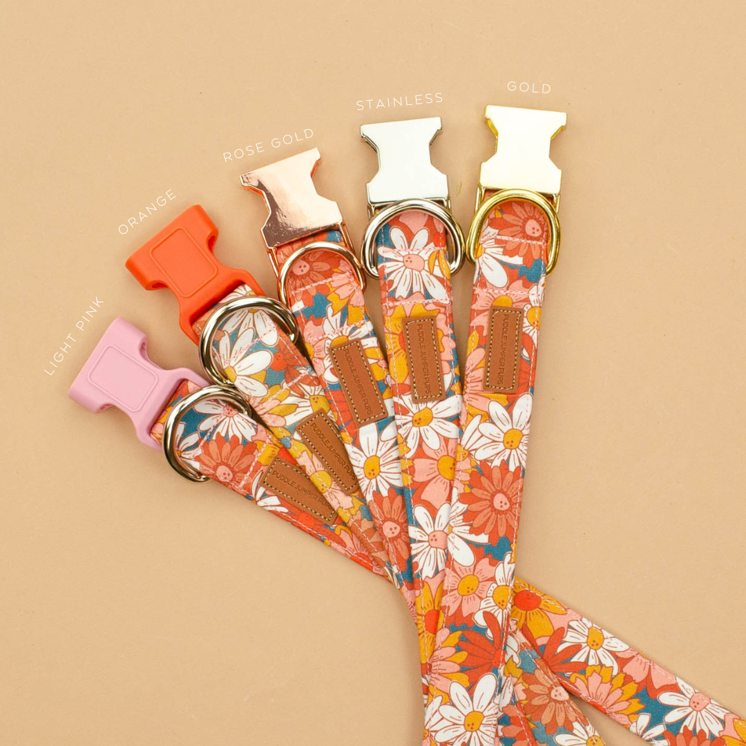 Golden chrysanthemums against a deep teal background. This collar is shown with an upgraded Rose Gold buckle.