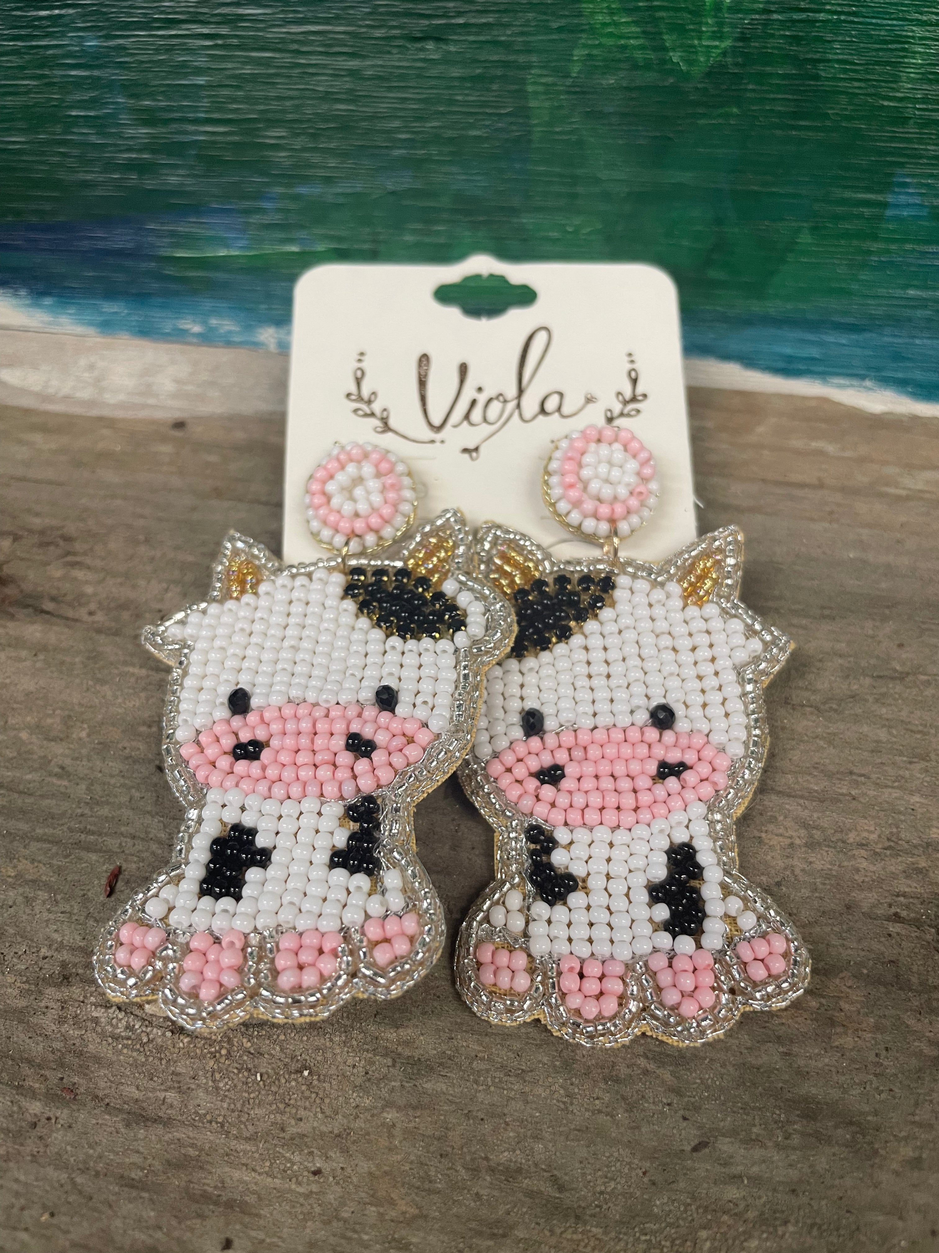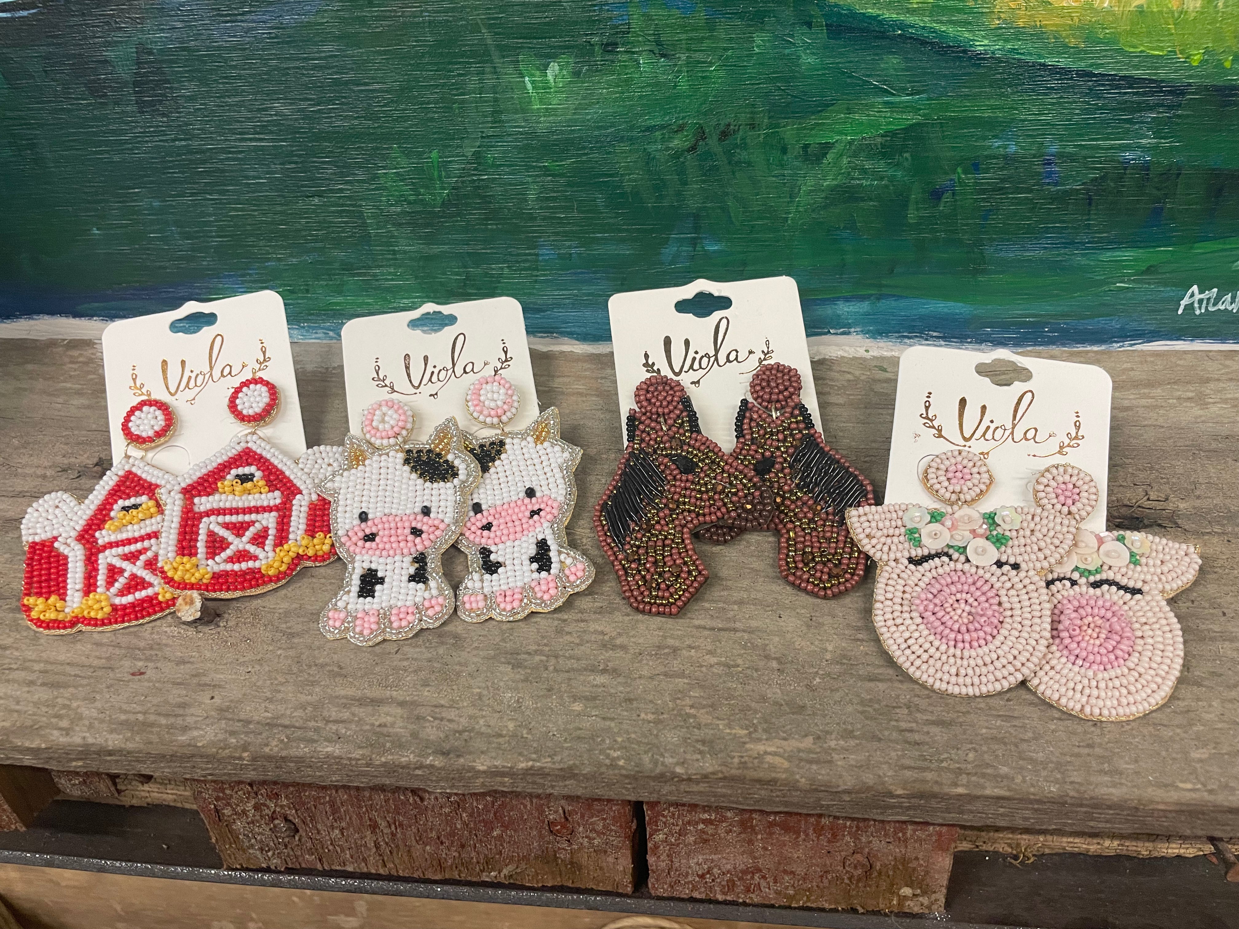 Beaded Farm Theme Earrings
