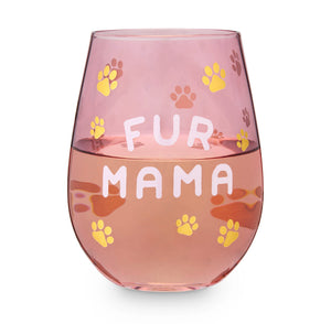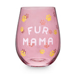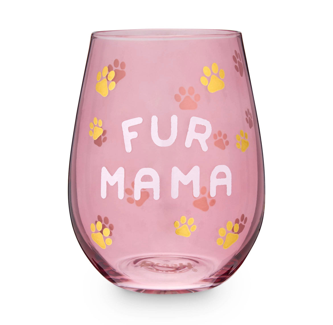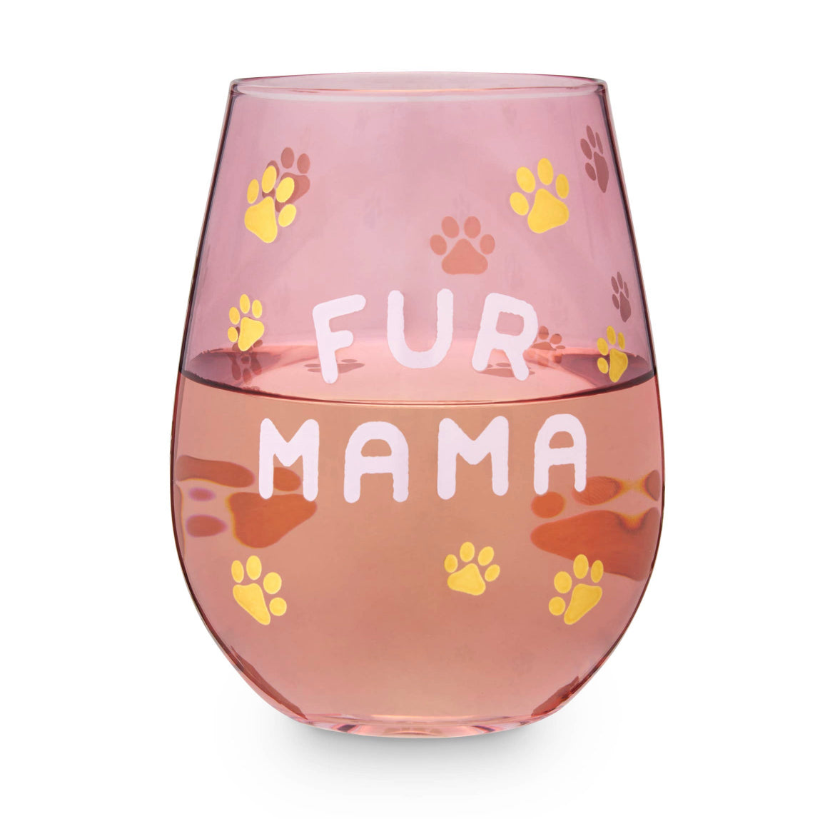 Get your paws on this Fur Mama stemless wine glass. A paw print pattern completes the theme, all you have to do is add your favorite wine. Holds 20 ounces.
