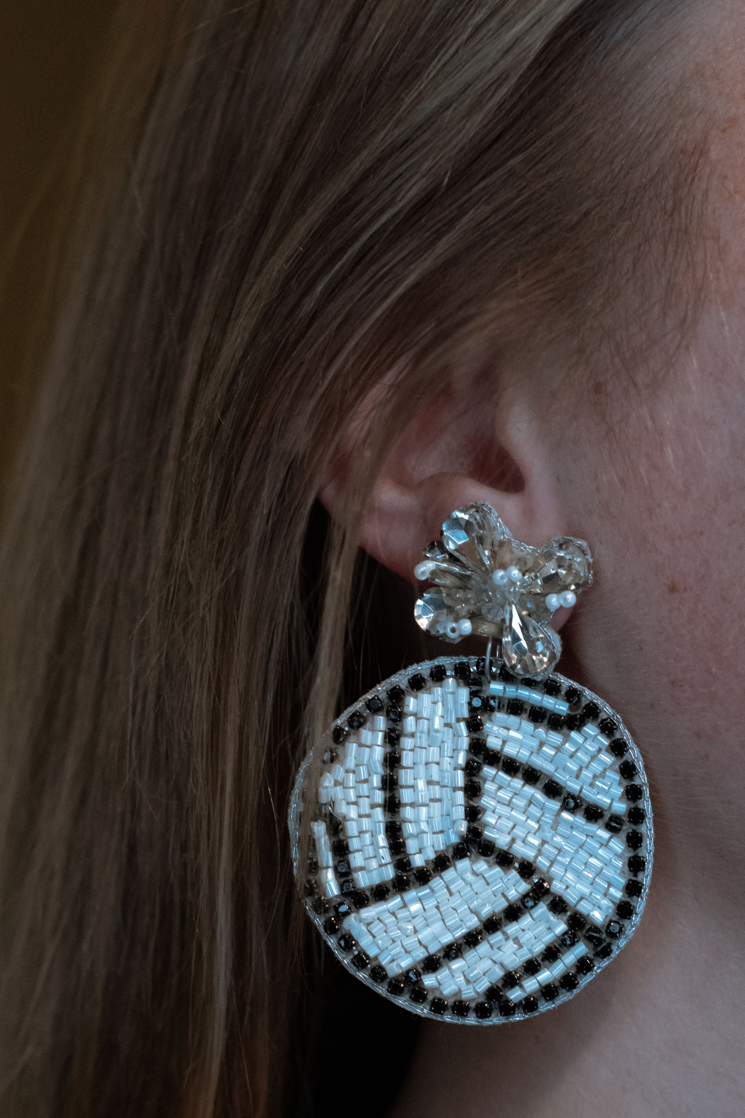 Take your game up a notch with these sparkly beaded volleyball earrings! They'll boost your style and your confidence. Go ahead, net a new look and let your court fashion take flight!