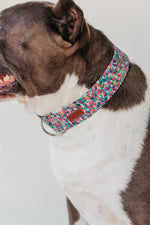 A gorgeous abstract pattern made up of shades of blue, pink, lime and indigo.